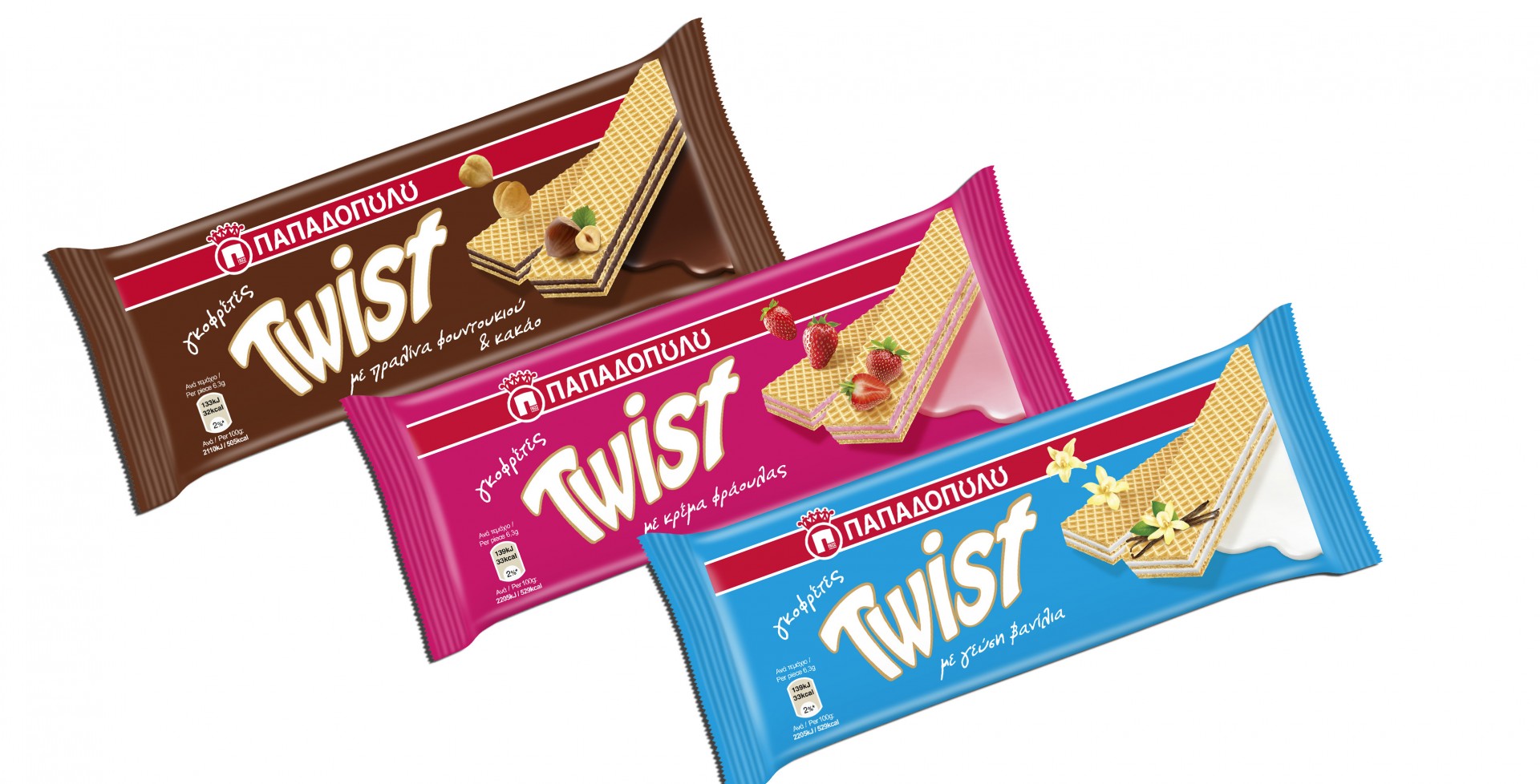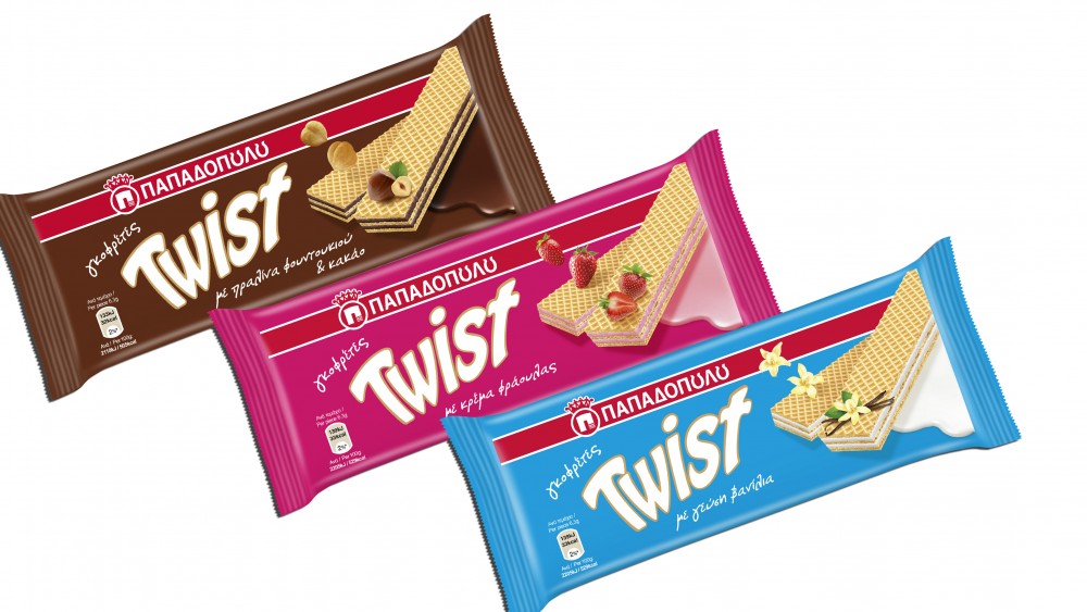 ΓΚΟΦΡΕΤΕΣ TWIST ΠΑΠΑΔΟΠΟΥΛΟΥ 11 December 2014ΝΕΑ ΠΡΟΪΟΝΤΑ ΓΚΟΦΡΕΤΑ, ΠΑΠΑΔΟΠΟΥΛΟΥ Λαχταριστές γκοφρέτες twist σε 3 υπέροχες γεύσεις, σοκολάτα, βανίλια και φράουλα!100γρ.