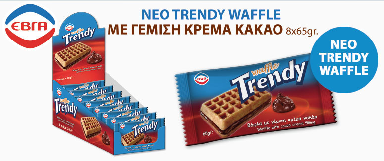 ΝΕΟ ΕΒΓΑ ΤΡΕNDY WAFFLE 17 November 2015ΝΕΑ ΠΡΟΪΟΝΤΑ WAFFLE, ΕΒΓΑ NΕΟ ΤRENDY WAFFLEME ΓΕΜΙΣΗ ΚΡΕΜΑ ΚΑΚΑΟ 8×65γρ.