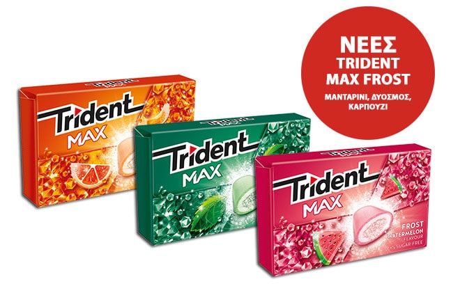 MONDELEZ ΝΕΕΣ ΤRIDENT MAX FROST 18 July 2016ΝΕΑ ΠΡΟΪΟΝΤΑ ΝΕΑ ΠΡΟΪΟΝΤΑ, ΤRIDENT, ΤΣΙΧΛΕΣ NEEΣ ΤRIDENT MAX FROST ΣΕ 3 ΥΠΕΡΟΧΕΣ ΓΕΥΣΕΙΣ:MANTAΡΙΝΙ, ΔΥΟΣΜΟΣ, ΚΑΡΠΟΥΖΙ