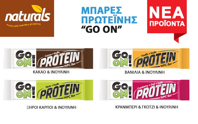 NATURALS ΜΠΑΡΕΣ ΠΡΩΤΕΪΝΗΣ GO ON 13 March 2017ΝΕΑ ΠΡΟΪΟΝΤΑ ενέργεια, Μπάρες, πρωτείνη Naturals μπάρες πρωτεϊνης Go on 50grσε 4 υπέροχες γεύσεις