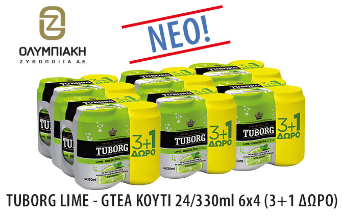 TUBORG LIME GREEN TEA 13 March 2017ΝΕΑ ΠΡΟΪΟΝΤΑ GREEN TEA, TUBORG TUBORG LIME – GTEA KOYTI 24/330ml 6×4 (3+1 ΔΩΡΟ)