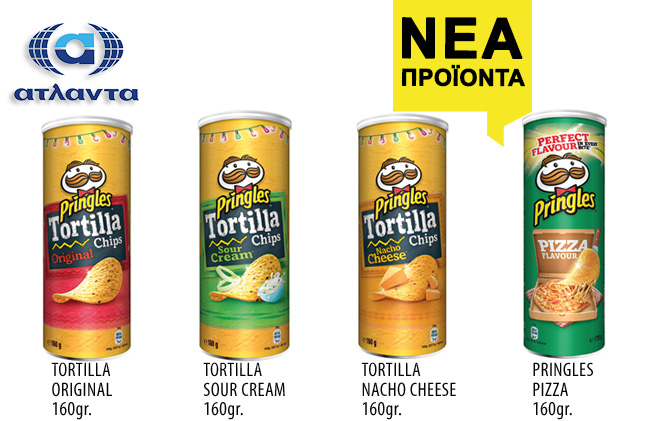 PRINGLES 12 June 2017ΝΕΑ ΠΡΟΪΟΝΤΑ ΠΑΤΑΤΑΚΙΑ TORTILLA ORIGINAL 160gr.TORTILLA SOUR CREAM 160gr.TORTILLA NACHO CHEESE 160gr.PRINGLES PIZZA 160gr.