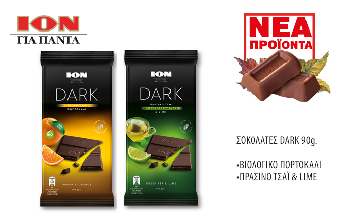 ΙΟΝ ΣΟΚΟΛΑΤΕΣ DARK 13 October 2017ΝΕΑ ΠΡΟΪΟΝΤΑ ΣΟΚΟΛΑΤΕΣ DARK 90g.•ΒΙΟΛΟΓΙΚΟ ΠΟΡΤΟΚΑΛΙ•ΠΡΑΣΙΝΟ ΤΣΑΪ & LIME