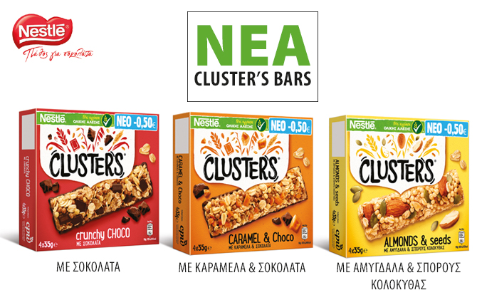 CLUSTER’S BARS 13 October 2017ΝΕΑ ΠΡΟΪΟΝΤΑ ME ΣΟΚΟΛΑΤΑME ΚΑΡΑΜΕΛΑ & ΣΟΚΟΛΑΤΑME ΑΜΥΓΔΑΛΑ & ΣΠΟΡΟΥΣΚΟΛΟΚΥΘΑΣ