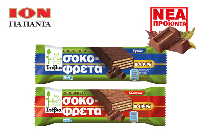 ION Σοκοφρέτες με stevia 7 October 2018ΝΕΑ ΠΡΟΪΟΝΤΑ ΣΟΚΟΦΡΕΤΑ ΥΓΕΙΑΣ ΜΕ ΣΤΕΒΙΑ 30γρ.ΣΟΚΟΦΡΕΤΑ ΓΑΛΑΚΤΟΣ ΜΕ ΣΤΕΒΙΑ 30γρ.