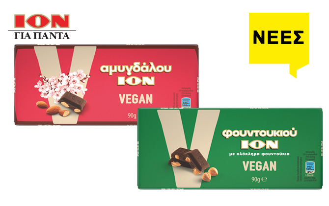 ΙΟΝ ΣΟΚΟΛΑΤΕΣ VEGAN 90γρ. 13 February 2022VEGAN, ΝΕΑ ΠΡΟΪΟΝΤΑ • ΙΟΝ ΣΟΚΟΛΑΤΑ ΑΜΥΓΔΑΛΟΥ VEGAN 90γρ. x 10τεμ.• ΙΟΝ ΣΟΚΟΛΑΤΑ ΦΟΥΝΤΟΥΚΙΟΥ VEGAN 90γρ. x 10τεμ.