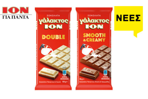 • ΣΟΚΟΛΑΤΑ ΙΟΝ ΓΑΛΑΚΤΟΣ DOUBLE 100γρ. x 10τεμ. • ΣΟΚΟΛΑΤΑ ΙΟΝ ΓΑΛΑΚΤΟΣ SMOOTH & CREAMY 100γρ. x 10τεμ.